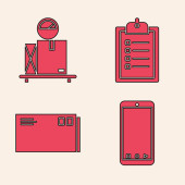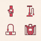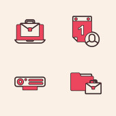 Zestaw Paszport z biletem, plecak turystyczny, Kalendarz i ikona Parking. Wektor.