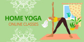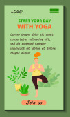 Plakat Home Szablon jogi. Ciało pozytywnej dziewczyny w dresie robiącej asanę. Praktyka relaksacyjna online. Zajęcia reklamowe w studio jogi i pilates. Stock wektor płaski nowoczesny ilustracja.