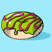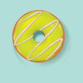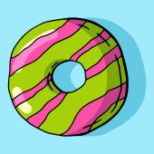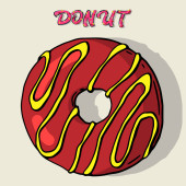 Szklany pączek. Odizolowany pączek z glazurą i gryzem, kolorowe zjedzone placki czekoladowe lub pączki z karmelowym kółkiem