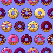 Szkliwione pączki. Odizolowane pączki z glazurą i gryzem, kolorowe zjedzone placki czekoladowe lub pączki z karmelowym kółkiem
