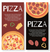 Banery poziome ze składnikami pizzy i pizzy. Bazylia, pieczarki, pomidory, mozzarella, cebula, papryka.