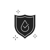 Wodoodporna czarna ikona glifu. Koncepcja technologii wodoodpornej. Piktogram na stronę internetową, aplikacja mobilna, promo. Element projektowy interfejsu UI UX GUI