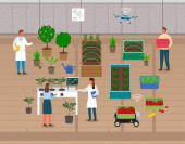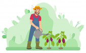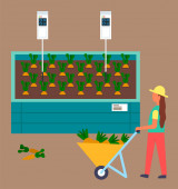 Truskawki i pomidory uprawiane przez człowieka w drewnianych skrzynkach, zajęcie rolnicze, plantator z pudełkiem