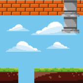 Zdjęcie "Ilustracja sceny słynnej starej gry wideo, retro stylu zrzutu ekranu znajome tło" może być wykorzystywane do celów osobistych i komercyjnych zgodnie z warunkami zakupionej licencji Royalty-free. Obraz jest dostępny do pobrania w jakości wysokiej rozdzielczości do 5760x3840.