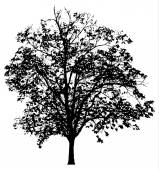 Sylwetka jesionu (Fraxinus L.) z liśćmi, czarny obraz wektora na białym tle
