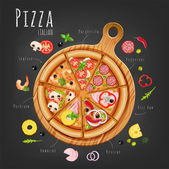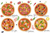 Zestaw pizzy z różnymi nadzieniami. ilustracja