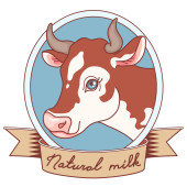 Wytwórnia mleka. Zabytkowe logo krowy dla sklepu. Odznaka za koszulki. Ręcznie narysowany szkic grawerowany. Ilustracja wektora.
