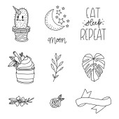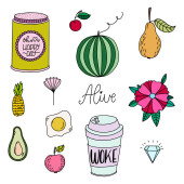 Zestaw ręcznie rysowane słodkie nowoczesne naklejki. Piękne proste ilustracje. Odznaki moda patch, szpilki, łaty w kreskówkowym stylu 80s-90s komiks.