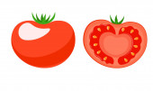 Stylizowana ikona pomidorowa, plasterek warzyw izolowany na białym tle. Koncepcja zdrowego życia kończy ekologiczną żywność naturalną. Ilustracja wektora.
