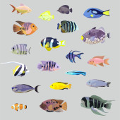 Zdjęcie "Duży zestaw tropikalnych sylwetek ryb odizolowanych na białym tle. Ilustracja wektora." może być wykorzystywane do celów osobistych i komercyjnych zgodnie z warunkami zakupionej licencji Royalty-free. Obraz jest dostępny do pobrania w jakości wysokiej rozdzielczości do 5760x3840.