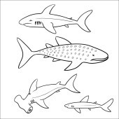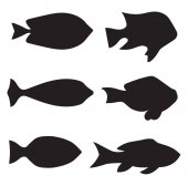 Duży zestaw tropikalnych sylwetek ryb odizolowanych na białym tle. Ilustracja wektora.