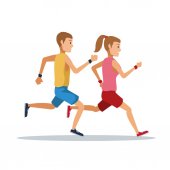 sylwetki biegających par lekkoatletycznych