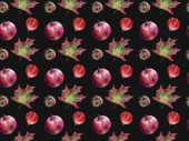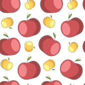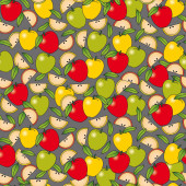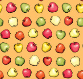 Doodle kreskówki hipster styl bezszwowy wzór wektor ilustracji. Czerwone, pomarańczowe, żółte zielone jabłka. Bar restauracja reklamy menu, karta, rolnicy rynek żywności wystrój, projekt strony internetowej lub tkaniny