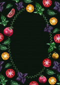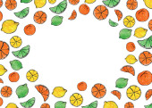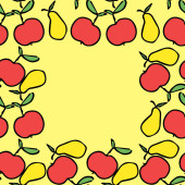 Doodle kreskówki hipster styl ramki obramowanie ozdoba ilustracja. Czerwone, pomarańczowe, żółte zielone jabłka. Bar restauracja menu, karta, rolnicy rynku żywności wystrój. Rozmiar A4 z wolnym puste miejsce na tekst