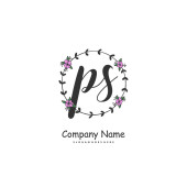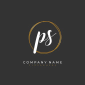 P S PS Wstępny projekt pisma ręcznego i logo podpisu z okręgiem. Piękny projekt ręcznie pisane logo mody, zespołu, ślubu, luksusowe logo.