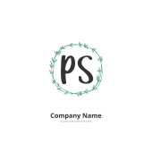 P S PS Wstępny projekt pisma ręcznego i logo podpisu z okręgiem. Piękny projekt ręcznie pisane logo mody, zespołu, ślubu, luksusowe logo.