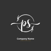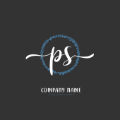 P S PS Wstępny projekt pisma ręcznego i logo podpisu z okręgiem. Piękny projekt ręcznie pisane logo mody, zespołu, ślubu, luksusowe logo.