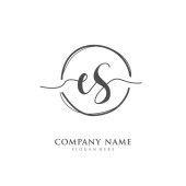 E S ES Wstępny projekt pisma ręcznego i logo podpisu z okręgiem. Piękny projekt ręcznie pisane logo mody, zespołu, ślubu, luksusowe logo.