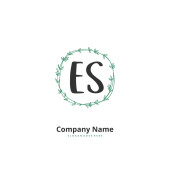 E S ES Wstępny projekt pisma ręcznego i logo podpisu z okręgiem. Piękny projekt ręcznie pisane logo mody, zespołu, ślubu, luksusowe logo.