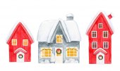 cute strony rysowane wektor kartki świąteczne z domów zimowych