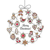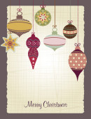 wektorowa kartka świąteczna z bombkami i dekoracjami
