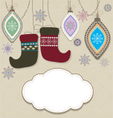 wektorowa kartka świąteczna z bombkami i dekoracjami