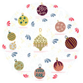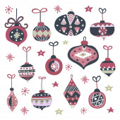 wektorowa kartka świąteczna z bombkami i dekoracjami