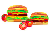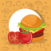 Zdjęcie "Hot dog i hamburger na drewnianej desce do krojenia. Składniki do robienia hot dogów. Sałata, pomidory, cebula, bułki, kiełbasa, ketchup. Szybkie żarcie. Zestaw ilustracji wektora kreskówek izolowanych na białym tle." może być wykorzystywane do celów osobistych i komercyjnych zgodnie z warunkami zakupionej licencji Royalty-free. Obraz jest dostępny do pobrania w jakości wysokiej rozdzielczości do 5760x3840.