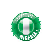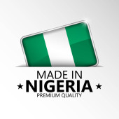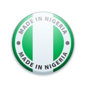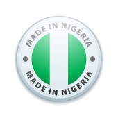 Symbol koła wektorowego. Tekst wyprodukowany w Nigerii z flagą. Pieczęć. Izolacja na białym tle.