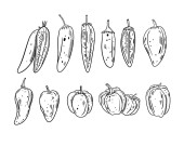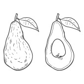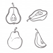 Inny zestaw gruszek. Czarny kolor zarys styl wektor ilustracji. Odizolowany na białym tle. Projekt banera, plakatu i nadruku.