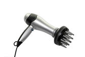 Nowoczesna suszarka do włosów na białym tle, widok z góry