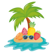 witam wakacje w sezonie letnim z kokosem i parasolem