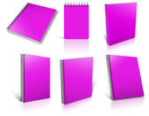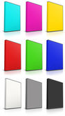 Pusty pionowy szablon książki stojący na białej powierzchni. CMYK renderowanie 3D. Perspektywa.