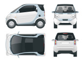 Mały samochód kompaktowy z napędem elektrycznym lub hybrydowy. Ekologiczne auto hi-tech. Łatwa zmiana koloru. Wektor szablonu izolowany na białym froncie View