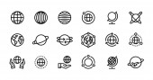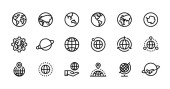Ikony ziemskiej linii globu. Ikona globalnego świata planety ustawia edytowalne pociągnięcia. Prosta liniowa ilustracja wektora