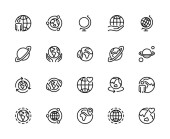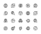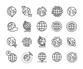 Zdjęcie "Ikony ziemskiej linii globu. Ikona globalnego świata planety ustawia edytowalne pociągnięcia. Prosta liniowa ilustracja wektora" może być wykorzystywane do celów osobistych i komercyjnych zgodnie z warunkami zakupionej licencji Royalty-free. Obraz jest dostępny do pobrania w jakości wysokiej rozdzielczości do 5760x3840.