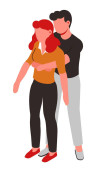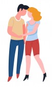 Kobieta całuje mężczyznę z bagażem, podróżuje para w miłości