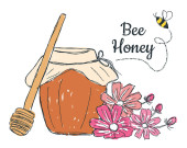Zdjęcie "Pocztówka dla miodu, świeży tekst miodu. Beczka z miodem, pszczołami, kwiatami, łyżką. Przydatne do projektowania ulotek, naklejek, banerów, tła. Ilustracja wektora narysowanego ręcznie. " może być wykorzystywane do celów osobistych i komercyjnych zgodnie z warunkami zakupionej licencji Royalty-free. Obraz jest dostępny do pobrania w jakości wysokiej rozdzielczości do 5760x3840.