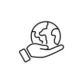 Zarys strony trzymając ikonę ziemi.Ręczne trzymając zilustrowanie wektora ziemi. Symbol sieci i telefonu komórkowego