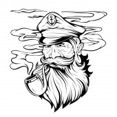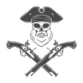 Zdjęcie "Brodaty, zły pirat. Pirat rewolwerowy. Logo kapitana. Pirackie Oko. Kapelusz Buccaneera. Klasyczny marynarz. Twarz filibustera. Freebooter. Monochromatyczny styl. Grafika wektorowa do projektowania." może być wykorzystywane do celów osobistych i komercyjnych zgodnie z warunkami zakupionej licencji Royalty-free. Obraz jest dostępny do pobrania w jakości wysokiej rozdzielczości do 5760x3840.