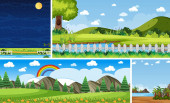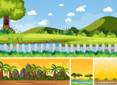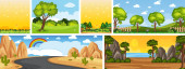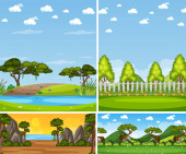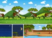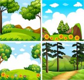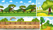 Cztery tło różne sceny natury z zielonymi drzewami w różnych czasach ilustracji