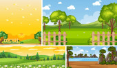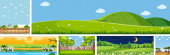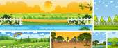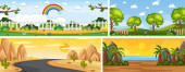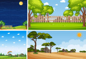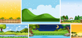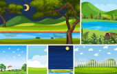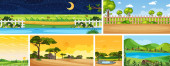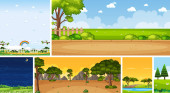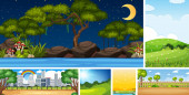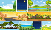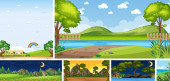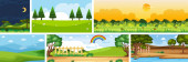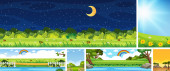 Zestaw różnych scen miejsca przyrody w pionowych i horyzontalnych scenach w dzień i w nocy ilustracji