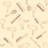 Piękno i bezproblemowy wzór. Liniowe ikony fryzjera na białym tle, bezszwowy wzór z grzebieniami