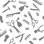 Piękno i bezproblemowy wzór. Liniowe ikony fryzjera na białym tle, bezszwowy wzór z grzebieniami