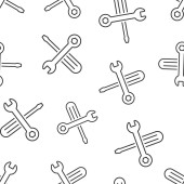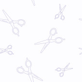 Ikona nożyczek w płaskim stylu. Wytnij sprzęt wektor ilustracji na białym odizolowanym tle. Koncepcja firmy Cutter bezszwowy wzór.