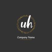 L H LH Początkowy charakter pisma i logo podpisu z okręgiem. Piękny projekt ręcznie pisane logo mody, zespołu, ślubu, luksusowe logo.