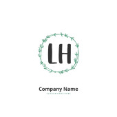 L H LH Początkowy charakter pisma i logo podpisu z okręgiem. Piękny projekt ręcznie pisane logo mody, zespołu, ślubu, luksusowe logo.
