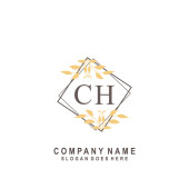 C H CH Wstępny projekt pisma i logo podpisu z okręgiem. Piękny projekt ręcznie pisane logo mody, zespołu, ślubu, luksusowe logo.