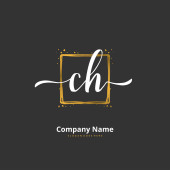 C H CH Wstępny projekt pisma i logo podpisu z okręgiem. Piękny projekt ręcznie pisane logo mody, zespołu, ślubu, luksusowe logo.