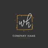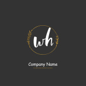 W H WH Wstępny projekt pisma i logo podpisu z okręgiem. Piękny projekt ręcznie pisane logo mody, zespołu, ślubu, luksusowe logo.